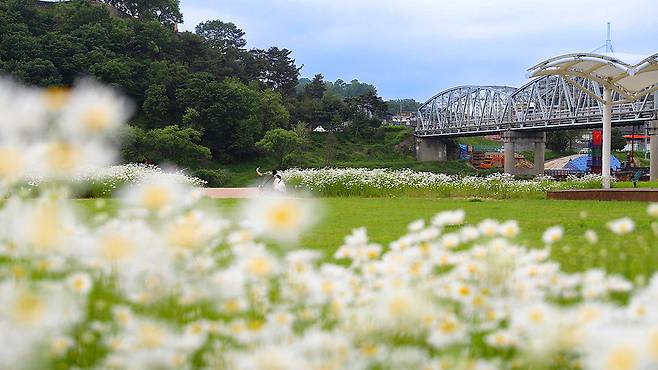미르섬의 매력은 꽃뿐만이 아니다. 샤스타데이지로 뒤덮인 산책로를 따라 걸으면, 마치 그림 속을 거니는 듯한 착각이 든다.