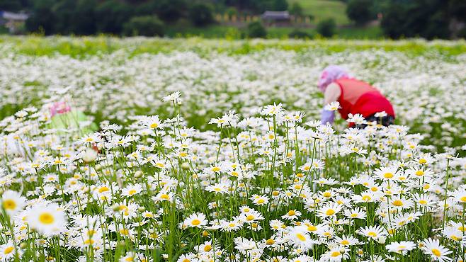 꽃말처럼 ‘인내’와 ‘밝은 마음’, ‘평화’를 상징하는 샤스타데이지는 이곳의 분위기와 절묘하게 어우러지며 방문객의 마음을 사로잡는다.