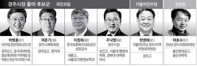 국민의힘 경선은 다자대결 구도가 예상된다. 현역 프리미엄과 APEC 성과를 토대로 시정의 연속성·안정론을 내걸고 3선에 도전하는 주낙영 시장이 가장 유리한 고지를 선점했다는 평가를 받고 있다.