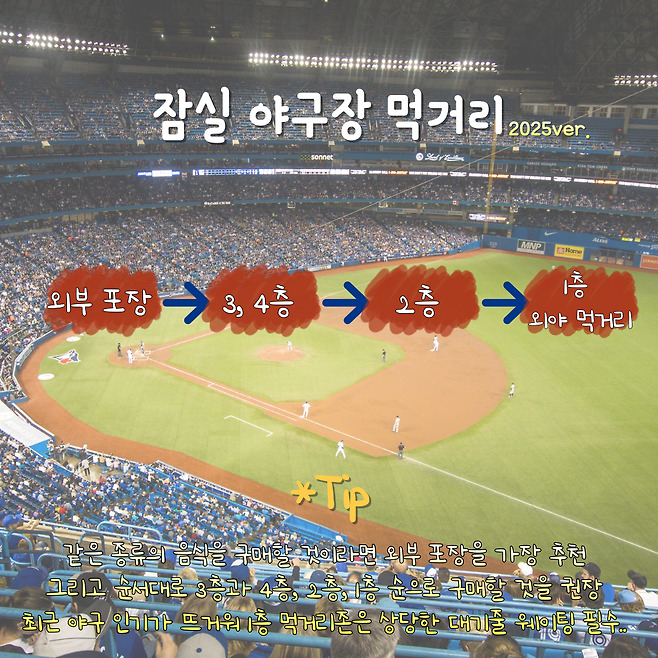 그래서 잠실 야구장에서 제대로 즐기고 싶다면, '어디에 앉느냐'보다 ‘어디에서 무엇을 먹느냐’가 더 중요할지도 모릅니다!