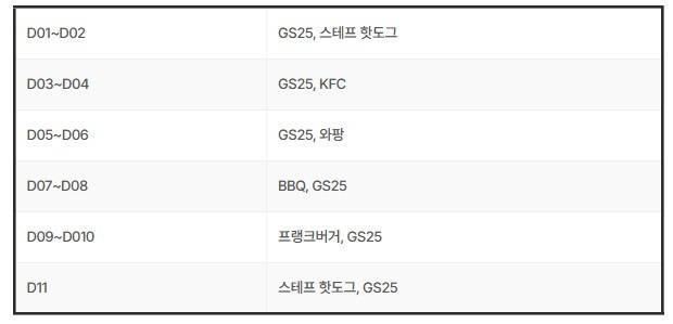 아래에서 소개할 표를 통해 원하는 매장이 위층이나 외부에 있다면 1층에서 웨이팅 하지 말고 2층이나 3층, 외부에서 포장해 오는 것을 추천해 드립니다.