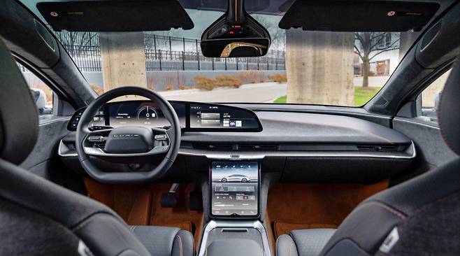 실내에는 최대 7명까지 탑승할 수 있으며, 최고급 4인승 모델도 개발 중입니다. 대형 파노라마 글래스 루프에는 열 코팅이 적용되어 실내 온도가 과도하게 상승하는 것을 방지합니다. 추후에는 전기 변색 파노라믹 루프도 출시될 예정입니다. 루시드는 34.0인치 OLED 디스플레이와 12.6인치 가로형 컨트롤 패널 디스플레이를 장착했습니다. 또한, 듀얼 터치패드가 장착된 스티어링 휠, 대형 헤드업 디스플레이, 차량용 노래방 기능도 제공합니다. 루시드 생츄어리 기능은 차량 내 모든 스크린에 동일한 자연 경관을 표시하여 편안한 휴식을 돕습니다. 이 모드에서는 마사지를 받으며 휴식을 취하는 동안 영상, 사운드, LED 앰비언트 조명 효과를 즐길 수 있습니다.