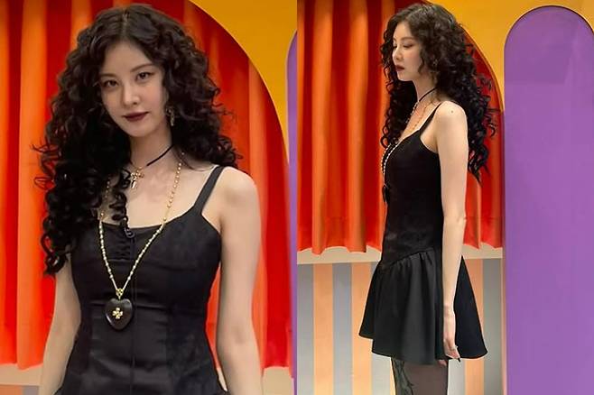 서현은 평소 반듯하고 단정한 이미지와 달리 검은색 미니드레스, 망사스타킹, 히피펌, 스모키 메이크업 등 반전 넘치는 비주얼로 등장했습니다.