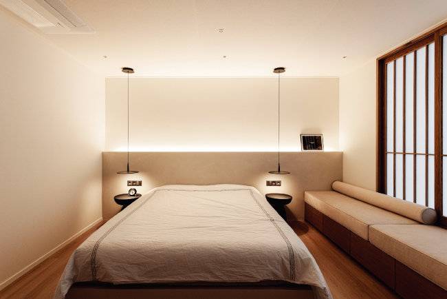 부부 침실에서 단연 눈에 띄는 것은 일반적인 새시를 대신해 제작한 원목 미서기문이다. 재미있는 점은 집 전체를 관통하는 모던한 분위기에 지극히 한국적인 요소를 배치했는데도 전혀 이질감이 들지 않는다는 것. 오히려 세련미를 더 끌어올린다. 벤치에 올라서기 위한 용도로 바닥에 놓은 리얼 디딤석은 색다른 재미까지 선사한다. 가족의 화합과 라이프스타일이 중심이 된 집. 이곳을 통해 우리가 잊고 있었던 집의 본질에 대해 다시금 되돌아보게 된다.