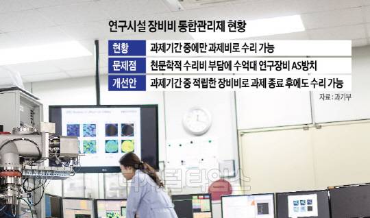 이런 문제가 벌어진 근본 원인은 R&D 과제가 종료되면 연구장비가 고장 나도 연구비에서 수리비용을 충당할 수 없도록 국가연구개발사업 관리 규정에서 정해놨기 때문이다. 이를 해결하기 위해 과기정통부는 연구 현장과 소통하고 의견을 반영해 특례조항을 신설했다. 그 결과 탄생한 것이 '연구시설·장비비 통합관리제'다.