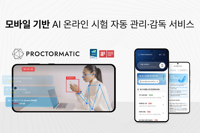 프록토매틱은 응시자들의 휴대폰을 활용해 AI 감독관이 시험을 감독하는 온라인 시험 솔루션이다. 응시자들은 모바일 앱을 통해 간편하게 온라인 시험의 모든 과정에 참여할 수 있으며, AI 감독관이 응시 영상을 분석해 구매자에게 상세 보고서를 제공하는 100% 자동화 절차를 갖췄다.