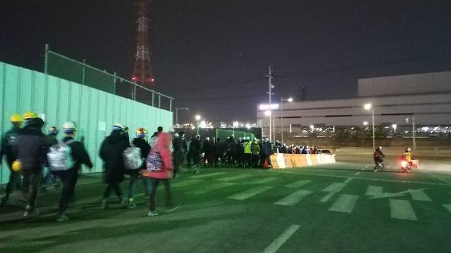 | ▲ 새벽시간 공장으로 출근하는 노동자들 |