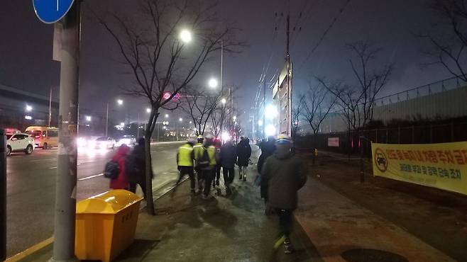 | ▲ 새벽시간대 몸을 움츠린 채 출근하는 노동자들 |