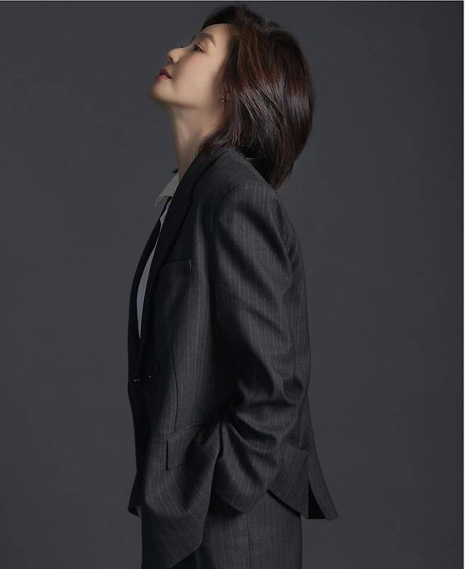 여기에 김성령은 회색 스트라이프 슈트 셋업을 착용해 도회적이고 스타일리시한 패션을 자랑했습니다.