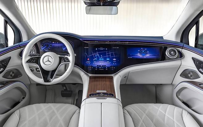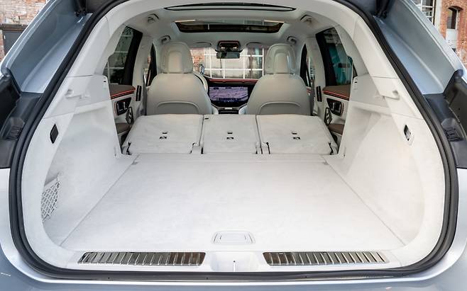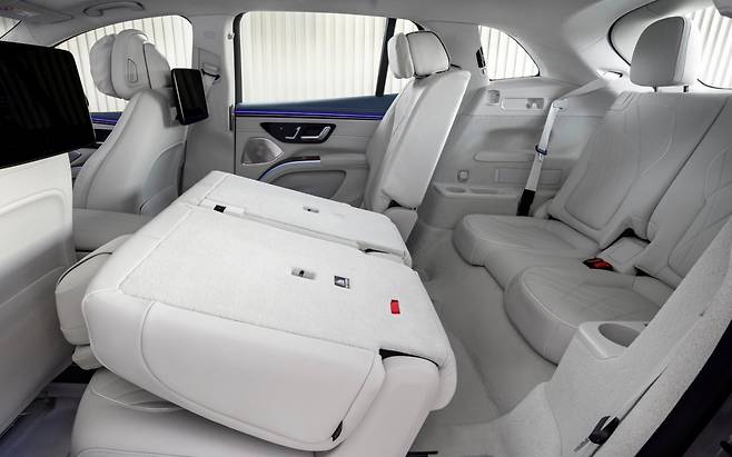 실내 1열은 EQS와 판박이다. 12.3인치 디지털 계기판과 17.7인치 OLED 디스플레이, 12.3인치 터치스크린(동승석)을 패널 하나에 묶은 MBUX 하이퍼스크린이 좋은 예다. 2열에는 전동 조절 시트와 11.6인치 후석 인포테인먼트 화면을 마련했다. 옵션으로 최대 2명이 탈 수 있는 3열 시트를 고를 수 있다. 2열과 3열 시트 모두 접었을 때 용량은 195L. 3열 시트를 접으면 645L로 늘어난다. 2열까지 모두 눕히면 최대 2,100L까지 확보할 수 있다.
