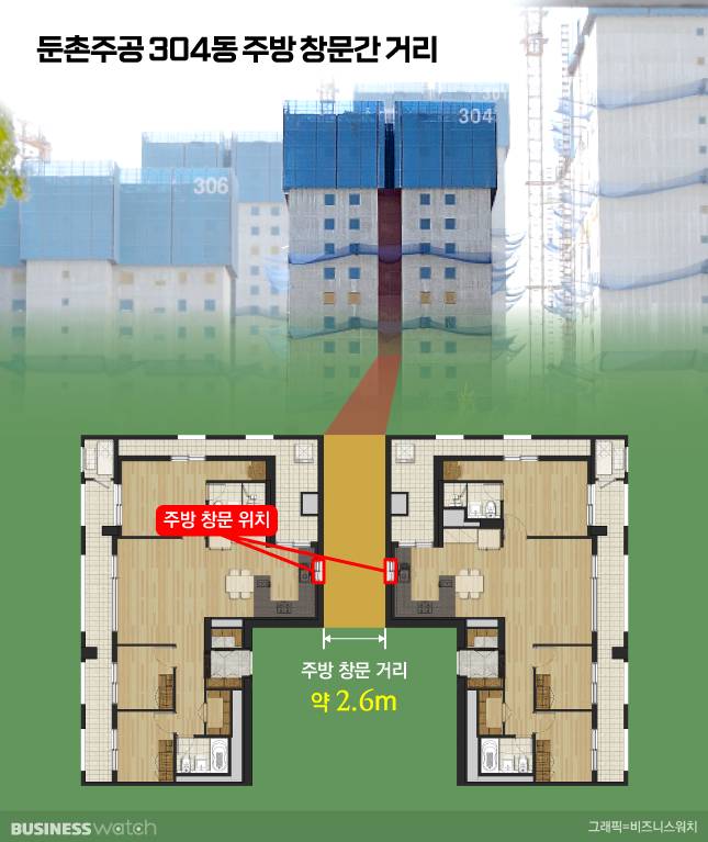 시공사업단 관계자는 "탑상형에선 불가능한 4베이를 만들기 위해 어쩔 수 없이 주방끼리 마주보게 됐다"며 "주방창이 엇갈리게 설계돼 정면에선 맞은편 집이 보이지 않는다"고 말했습니다.