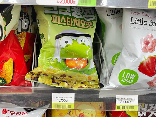첫 맛은 짭짤하고 뒷맛은 피스타치오 맛의 짱구과자