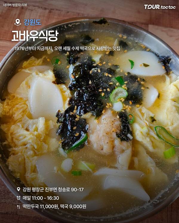 수제 떡과 직접 빚은 만두, 진한 고기육수가 어우러진 떡국 한 그릇은 설날의 정취를 고스란히 느끼게 해주는 강원도 떡국 맛집입니다.