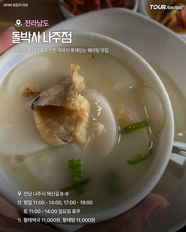 황태 육수의 깊고 개운한 맛으로 떡국을 만드는 ‘돌박사 나주점’은 웨이팅이 끊이지 않는 인기 맛집입니다.