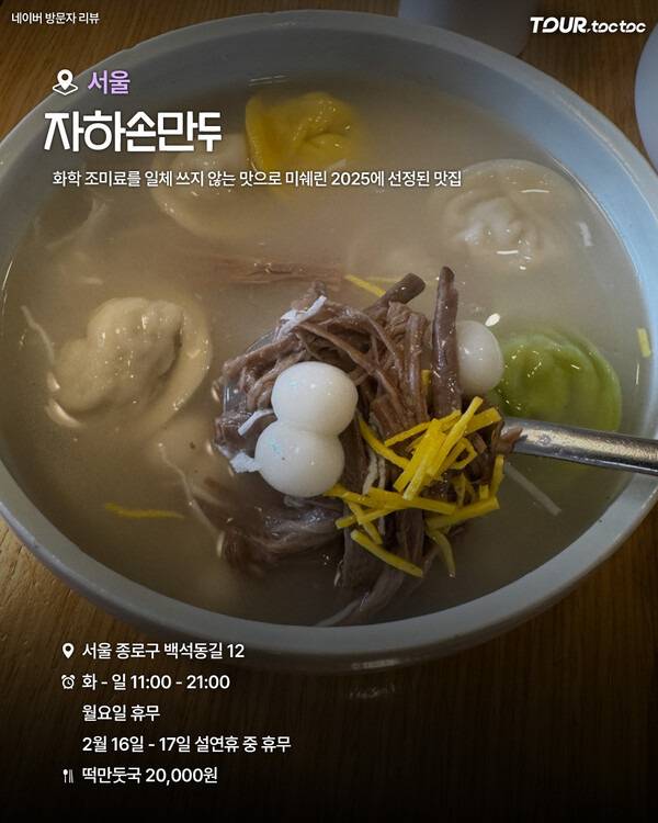 2. 자하손만두 – 조미료 없는 미쉐린 떡국