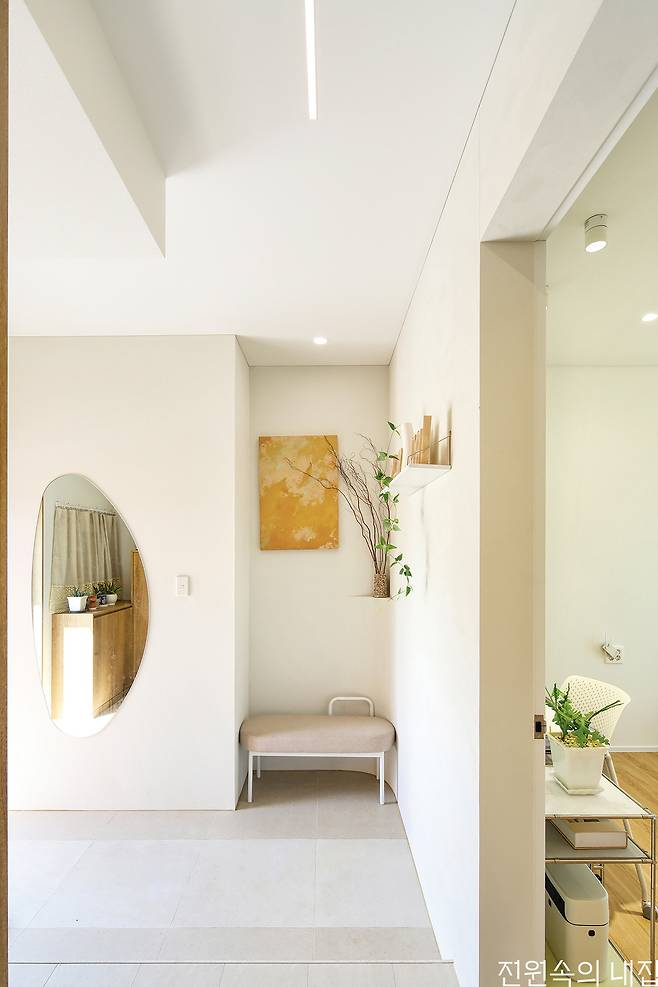 단정하고 깔끔한 하얀 집은 보물을 품고 있다. 싱싱한 초록과 빛으로 가득한 중정과 집에 대한 부부의 열정과 애정이다.