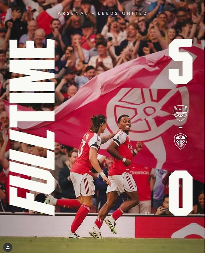 2025/2026 프리미어리그가 개막한 현재, 아스날이 리즈 유나이티드와의 PL 2라운드에서 5:0 대승을 거뒀다. 우승 후보 중 하나로 꼽히는 아스날은 이날 팀버의 2골, 이적생 빅토르 요케레스의 2골, 부카요 사카의 1골에 힘입어 시즌 초부터 대승을 거두며 리그 2연승을 거뒀다.