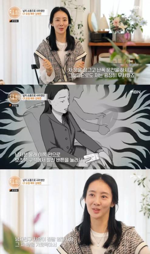 김채연은 “차에 타자마자 상황은 말투는 굉장히 점잖은 말투였는데 행동을, 그 점잖은 말투로 행동을 함부로 하시니까. 차 문을 잠그고 난폭 운전을 하시고 그것만으로도 저는 굉장히 무서웠죠. 그런 걸 겪어본 적도 없고 상상도 안해 본 터라 남자분 몰래 이쪽 편으로 보조석 구석에서 ‘마지막 발신자에게 연결만 되라’라고 생각하고 전화를 눌렀다”라고 급박했던 순간을 전했습니다.