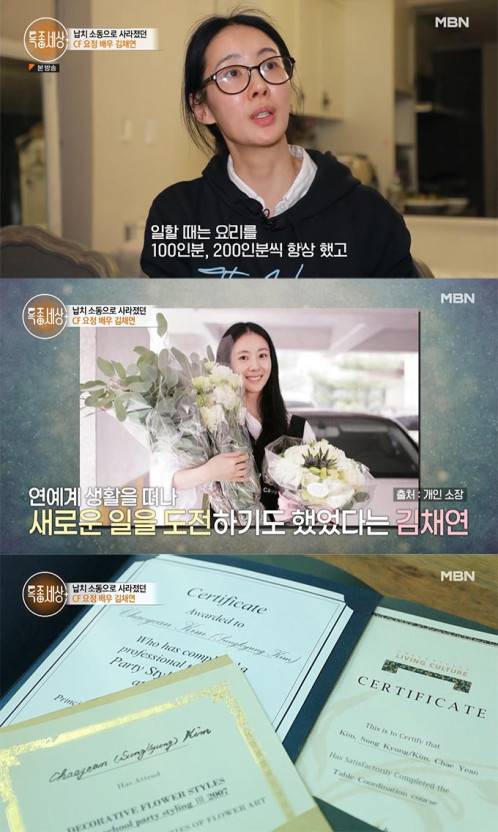 이어 김채연이 획득한 여러 자격증들이 공개됐습니다. 김채연은 연예계를 떠난 뒤 플로리스트, 파티 플래너 등으로 활동했습니다. 김채연은 10년 전 본명 김성경으로 이름을 바꾸며 드라마 복귀 시도했지만 활동은 쉽지 않았다고 했습니다.