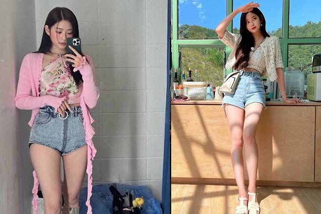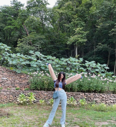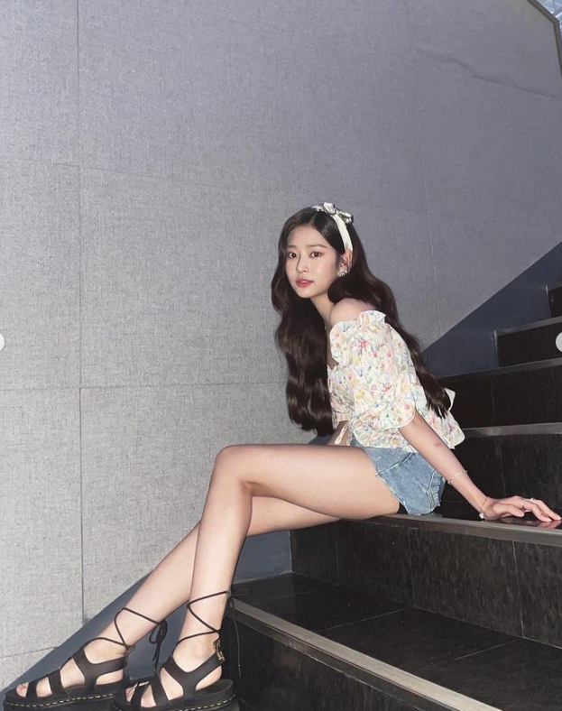 김민주는 여름에 시도해보면 좋을 스타일링을 선보였어요. 플라워 패턴의 오프숄더 상의에 청바지로 상큼하면서 청량감 있는 패션을 시도했습니다.