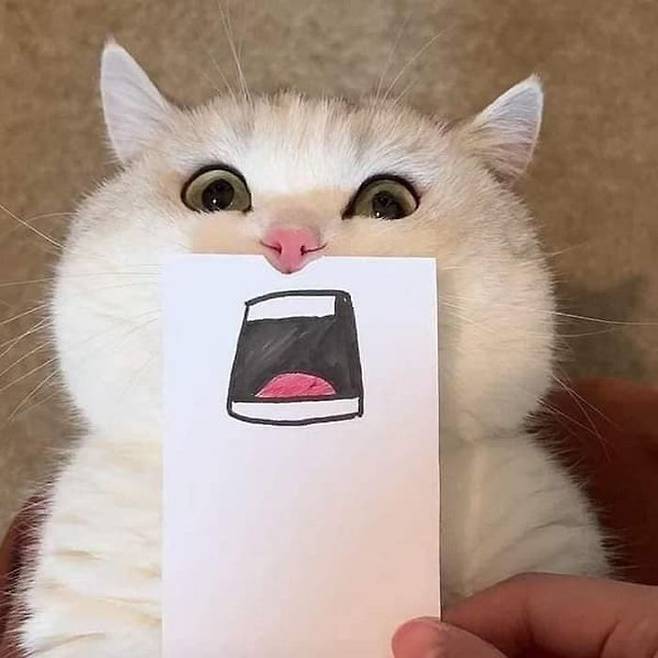 사연은 이렇습니다. SNS상에는 고양이에게 입모양이 그려져 있는 일러스트 그림 카드를 올려놓으면 무슨 일이 벌어지는지 찍은 영상이 올라온 것.