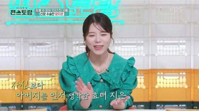 트로트 가수 양지은은 21세라는 어린 나이에 신장이식을 결심했다. 당뇨 합병증으로 시한부 판정을 받은 아버지를 위해서였다. 당시 의사는 “3개월밖에 살 수 없다”는 냉혹한 선고를 내렸지만, 혈액형이 맞는 딸이었던 양지은이 즉시 수술대에 올랐다. 그는 “아빠 대신 내가 죽을 수도 있는데 신장 하나 드리는 걸 왜 못하겠냐는 생각뿐이었다”며 담담히 회상했다.
