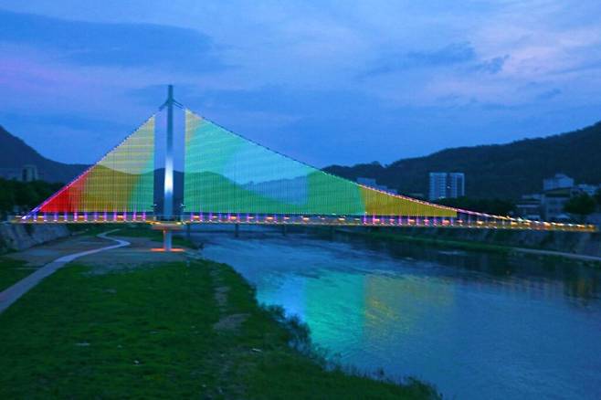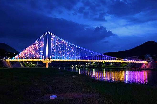전북특별자치도 무주군 무주읍 읍내리 1395에 위치한 ‘별빛다리’는 무주의 밤을 수놓는 야경명소다.