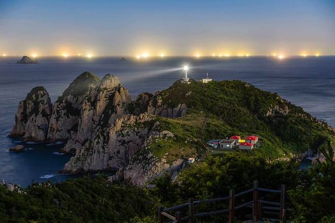 통영에서 배를 타고 들어가야만 도착하는 소매물도는 국내에서 풍경이 해외 같다는 평가를 가장 자주 받는 섬인데요. 주변의 아담한 섬들과 합쳐져 독특한 실루엣을 만들고, 바다 위에는 새벽부터 떠다니는 배들의 불빛이 바다에 반사되어 몽환적인 분위기를 더합니다.