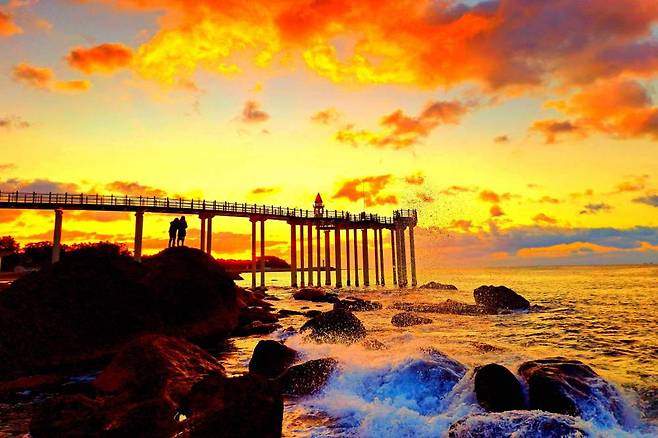 포항의 이가리 닻 전망대는 해안 절벽 위에 설치된 구조물로, 새벽 시간이 되면 일출 사진가들이 줄지어 찾을 정도로 환상적인 경상도 가볼 만한 곳입니다. 붉게 번지는 하늘과 파도, 그리고 전망대를 향해 걸어가는 사람들의 실루엣이 어우러져 드라마틱한 풍경이 펼쳐집니다.