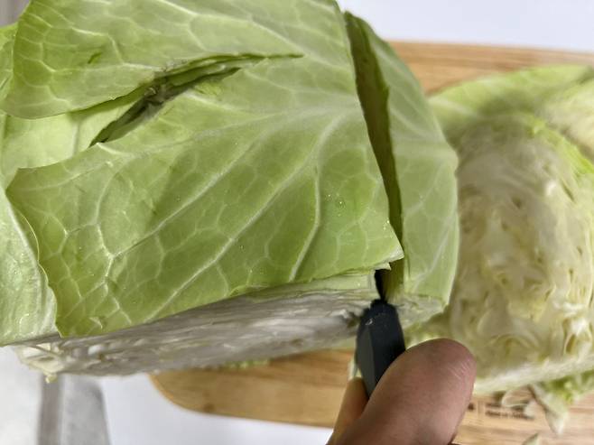 양배추는 크기가 거대하기 때문에 한 통을 사면 양이 꽤 많습니다. 그래서 적절하게 소분하여 보관하면 편한데요.