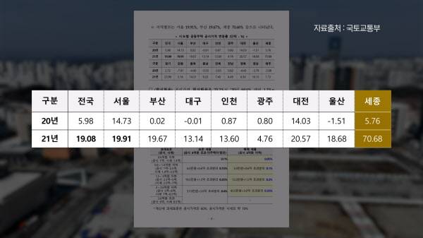 4년 전, 당시 여당인 민주당의 세종시 천도론으로 세종 집값이 ‘미친 집값’이라는 말이 나올 정도로 폭등했다. 2020년 세종시 아파트 가격은 실거래가 기준으로 무려 65.7% 폭등, 전국 상승률 1위를 기록했다. 2021년 세종시 공시가격은 무려 70.68% 오르면서 비트코인과도 같다는 말이 나왔다.