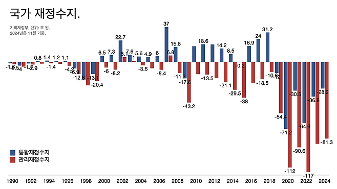 - 윤석열 정부는 세금을 깎으면서 예산을 과다 추계해서 펑크를 냈다. 쓸 돈도 안 쓰고 돌려 막기를 했다.
