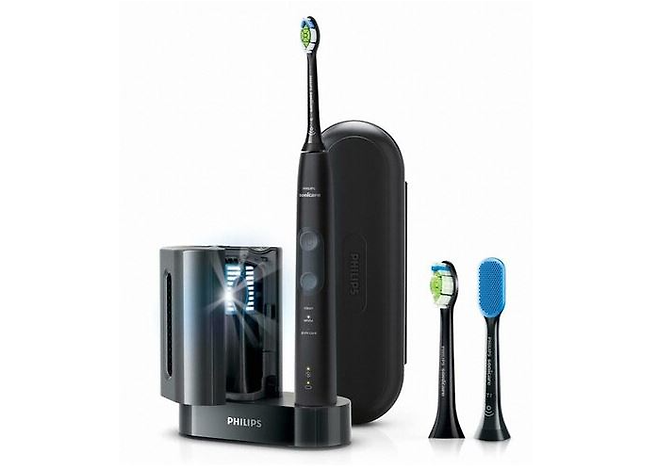 필립스 소닉케어 프로텍티브클린 3.0 블랙UV에디션 HX6462/01은 위에 소개한 기능들과 더불어 잇몸 케어와 화이트닝 기능까지 갖춘 상품이다. 전동칫솔 1개, 칫솔모 2개로 구성되어 있고, 충전기에 칫솔모 살균기능을 더해 세균으로 인한 걱정을 덜었다.