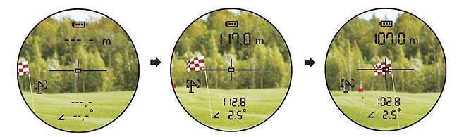거리측정기 조준선을 깃대 쪽으로 이동합니다.