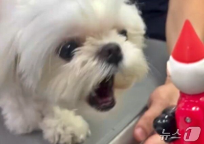 산타 인형을 보고 맹렬하게 짖는 몰티즈(말티즈) 강아지의 영상이 눈길을 끌고 있습니다.