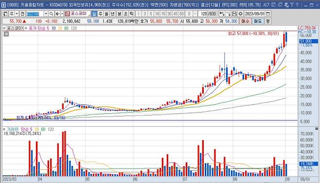 대장주였던 레인보우로보틱스는 다음날에도 장중 12.74%까지 상승하고 종가 기준 7.46% 상승 마감했습니다. 하지만 포스코DX는 종가 기준 7.66% 하락했습니다.