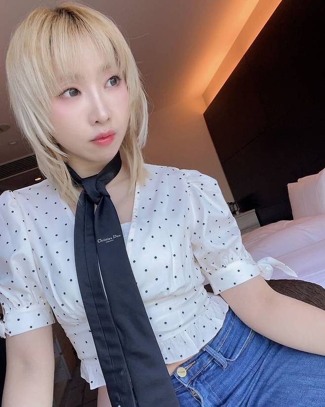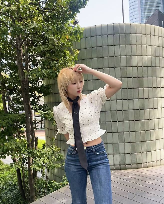 #스타패션 #공민지패션 #타이패션 #도트블라우스 #스트리트룩 #데님스타일링 #꾸안꾸룩 #K스타패션 #공민지룩