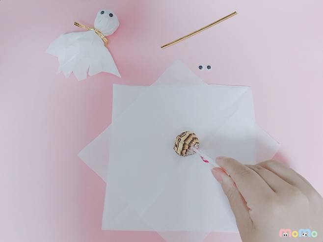 준비물 : 막대사탕, 휴지, 빵끈, 가위, 눈 스티커