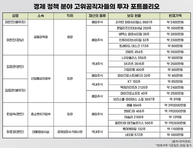 김정관·이찬진·한성숙 등 국내·외 주식 다량 보유…“개인 투자자들 참고자료 활용 가능성”
