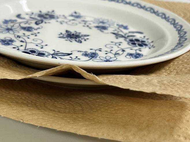 이럴 때 유용하게 사용할 수 있는 것이 바로 키친타월입니다. 접시 사이사이에 키친타월을 한 장씩 끼워주면, 접시끼리 직접 맞닿지 않아 마찰이 줄어들고 스크래치 방지 효과가 생깁니다.