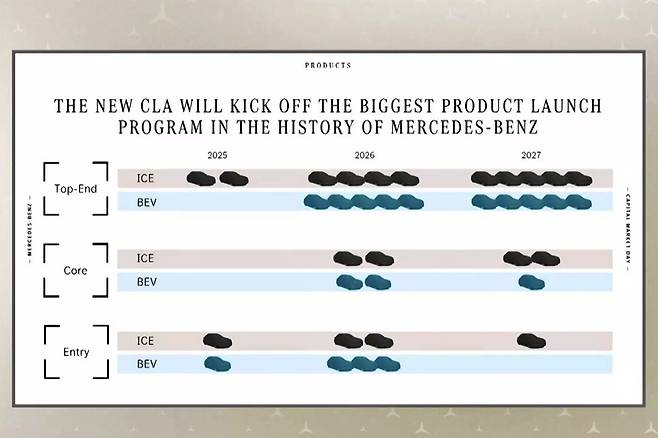 메르세데스는 2027년까지 총 36개의 신차를 선보일 계획이다. 이 중 17종은 전기차, 19종은 내연기관 차량으로 구성된다. 시장 경쟁이 심화되는 가운데, 메르세데스는 수익성 강화를 위해 생산 비용을 10% 절감하고, 공급업체와 협력해 원자재 비용을 낮추는 등 적극적인 대응에 나설 방침이다