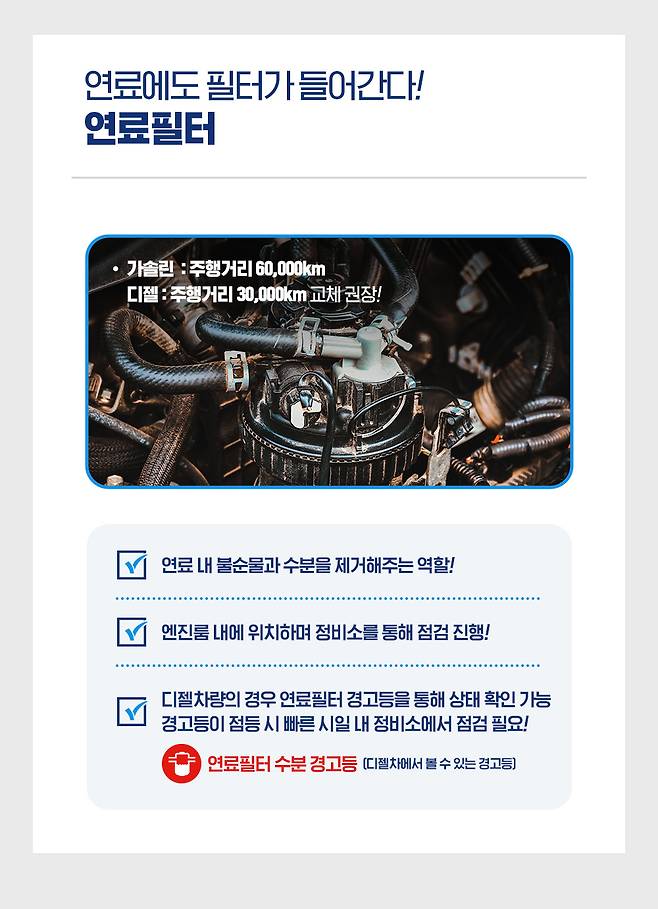 - 연료 내 불순물과 수분을 제거하는 ‘연료필터’