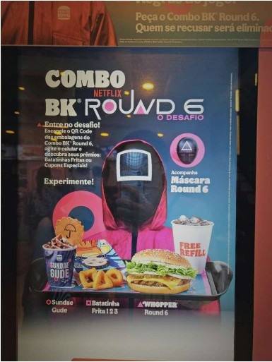넷플릭스 드라마 '오징어 게임'은 현지에서 큰 인기를 끌었다. 인기에 힘입어 지난해 11월 버거킹 브라질은 특별 메뉴 '오징어 게임 세트'를 출시했다.