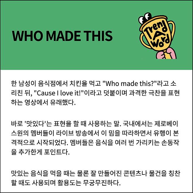 “Who made this?”를 외치는 것이 하나의 놀이처럼 유행하는 중!
