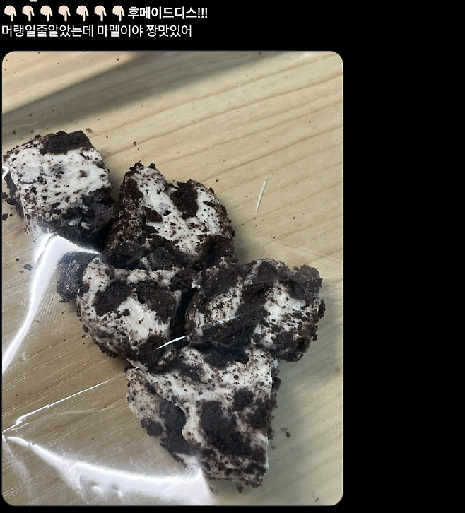 예를 들어, 투썸 스초생을 먹고 "투쌈 후메잌디스!"라고 하면