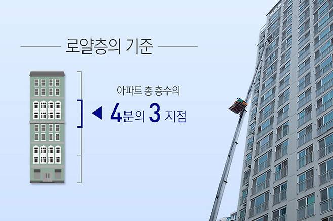 당초 쉽게 로열동 혹은 로열층으로 불리는 RR 매물은 일반적으로 최고층을 기준으로 50~80% 범위에 해당하는 층을 일컫는다. 즉, 최고 26층 아파트의 경우 136~21층이 로열층에 해당하는 것이다.