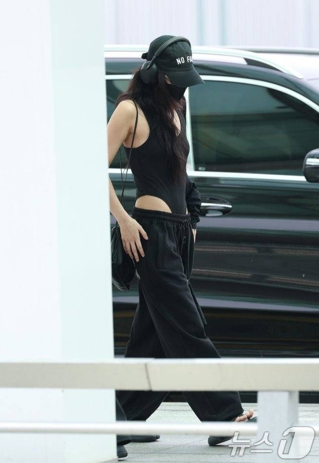 제니는 이날 올블랙 콘셉트로 등장해 시크하면서도 힙한 매력을 뽐냈습니다. 허리 라인을 강조한 블랙 바디수트에 블랙 팬츠를 매치해 완벽한 실루엣을 연출했으며, 여기에 블랙 쪼리를 매치하여 편안함과 스타일리시함을 동시에 잡았습니다. 과거 발가락 신발 패션으로도 화제를 모았던 그녀는 이번에도 쿨하고 엣지 넘치는 공항 패션으로 ‘레전드’를 갱신했다는 평가를 받고 있습니다. 무심한 듯하면서도 감각적인 포인트를 살린 스타일링이 돋보입니다.