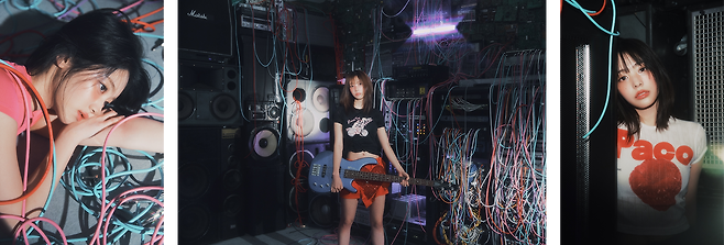 두 번째 콘셉트 포토에서는 멤버들이 어둡고 공허했던 분위기를 걷어내고 당당한 애티튜드를 선보입니다. 이번 콘셉트 포토에서는 조명이 쨍하게 비춰지는데요. 광채 나는 피부 표현과 블러셔를 강조한 메이크업으로 무대 위에서의 열정적인 모습을 표현했죠. 멤버들의 뒤에는 악기들을 연결하는 선이 복잡하게 얽혀 있는데, 이러한 배경에서 사진을 찍음으로써 일상 속 불협화음에도 굴하지 않는 의지를 보여줍니다.