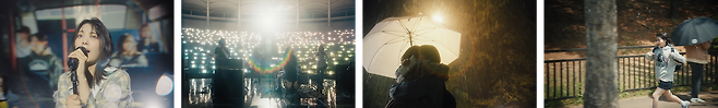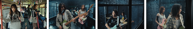 그리고 시연이 버스 안에 자리를 잡은 바로 그 순간! 연주 장면으로 전환이 되면서 버스 안에 세차게 빗물🌦️이 쏟아지는 모습이 펼쳐집니다. 멤버들이 빗속에서 연주를 하고 있는 장면에서 짜릿함을 느끼셨을 분들도 많았을 것 같은데요. 굵직굵직한 기타 사운드와 거세게 내리는 비, 그리고 그 속에서도 꿋꿋하게 연주를 하고 있는 멤버들의 모습을 통해 눈앞의 시련에 좌절하지 않겠다는 강한 집념을 보여줍니다. 일상적인 버스 안에서의 모습과 빗속에서 연주를 하는 모습을 대비시키기 위해 어둡고 푸른 색감을 사용한 것도 주목할 만한 포인트 중 하나인데요. 시청자들에게 카타르시스를 전달한다는 측면에서, 확실히 이들이 이제는 '밴드'라는 형태로 하나가 되었다는 것을 알 수 있습니다.