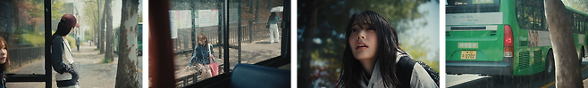 시연을 제외한 멤버들은 버스 정류장에 앉아 자신의 버스가 오기를 기다립니다. 하지만 "맑은 하늘에 / 비 내리는 날" 이라는 가사처럼 갑자기 비가 쏟아지기 시작하는데요. 그 순간, 정류장으로 들어오는 버스를 본 쵸단은 무언가 결심을 한 듯 그 버스에 올라탑니다. 이번 MV에서 버스🚌는 중요한 매개로 작용하는데요. 쵸단에 이어서 나머지 두 멤버들이 버스에 올라타고, 버스가 정류장을 통과하려는 찰나에 가까스로 시연이 올라타는 장면을 통해, 버스는 QWER이라는 팀 그 자체를 상징하는 것이라고 볼 수 있습니다.